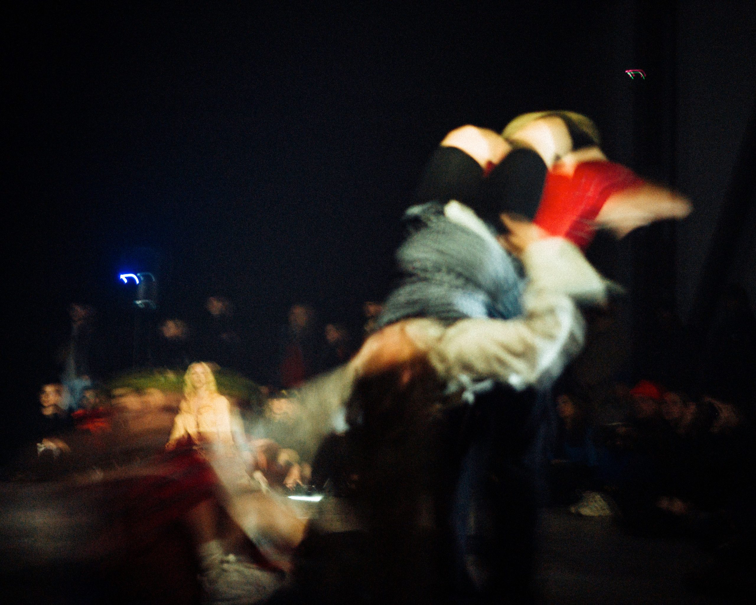 This work revisits and merges dances and movement sequences that Lo Fi Dance Theory created through various company research periods, group trainings, exchanges, and workshops, and is a study of splicing, pasting, and reconstruction, with a focus on not only how our interpretations of these past explorations overlap and enfold each other, but on where they generate friction, and where the disjunctions of the juxtapositions of past, present, and future arise. These dances, or variations, as we call them in this context, share a common choreographic grammar, which allows for them to be performed in any order while exchanges and communication arise throughout the piece, giving the infrastructure of the work room for the unexpected. Made of resonances, and with relationality at its core, VARIATIONS exists in a constant flux of assembling and disassembling the collective through collaborative listening and response. As dancers come together, disperse, and fall in and out of sync they prompt us to ask, Where have we been? Where are we? Where are we going?